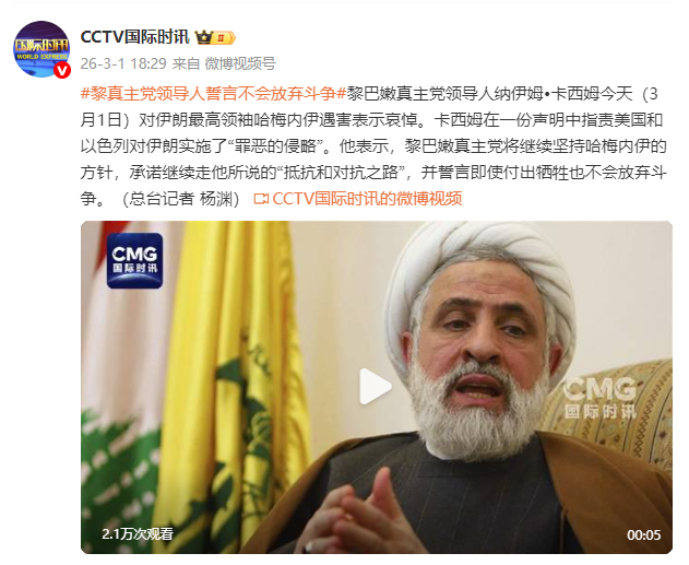 黎巴嫩真主党领导人纳伊姆•卡西姆今天(3月1日)对伊朗最高领袖哈梅内伊遇害表示哀悼。卡西姆在一份声明中指责美国和以色列对伊朗实施了“罪恶的侵略”。他表示,黎巴嫩真主党将继续坚持哈梅内伊的方针最大的线上实盘配资平台,承诺继续走他所说的“抵抗和对抗之路”,并誓言即使付出牺牲也不会放弃斗争。(总台记者 杨渊)